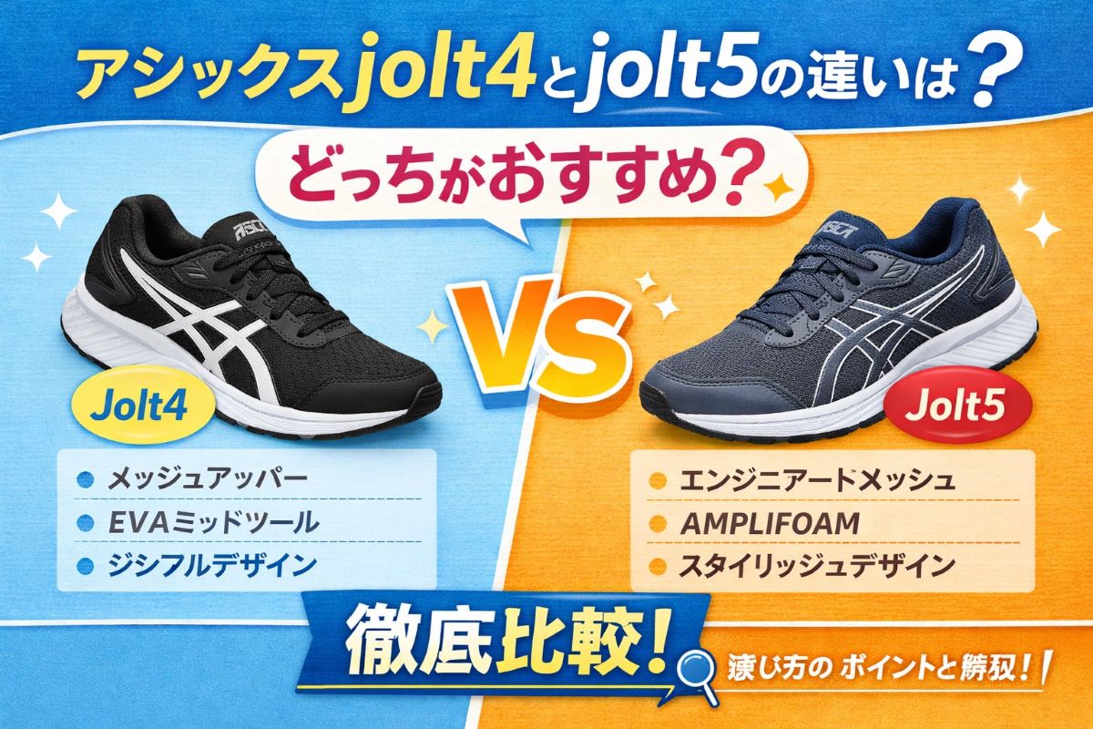 アシックスjolt4とjolt5の違いについて表で比較しながらどっちがおすすめか本文で詳しく紹介します。