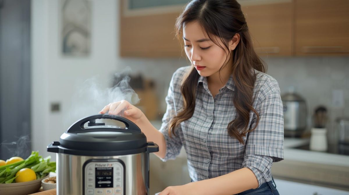 A: はい、大丈夫です。圧力調理モードなどでは安全弁から蒸気が出るのは正常な動作です。蒸気口をふさがないように設置する場所に注意すれば、安心して使えます。
