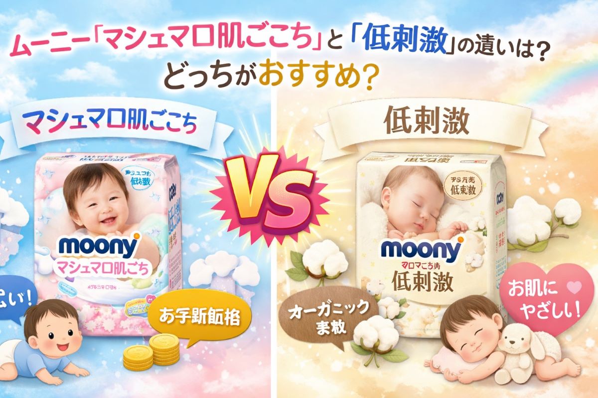 ムーニー「マシュマロ肌ごこち」と「低刺激」の違いを比較して、どっちがおすすめか紹介します。