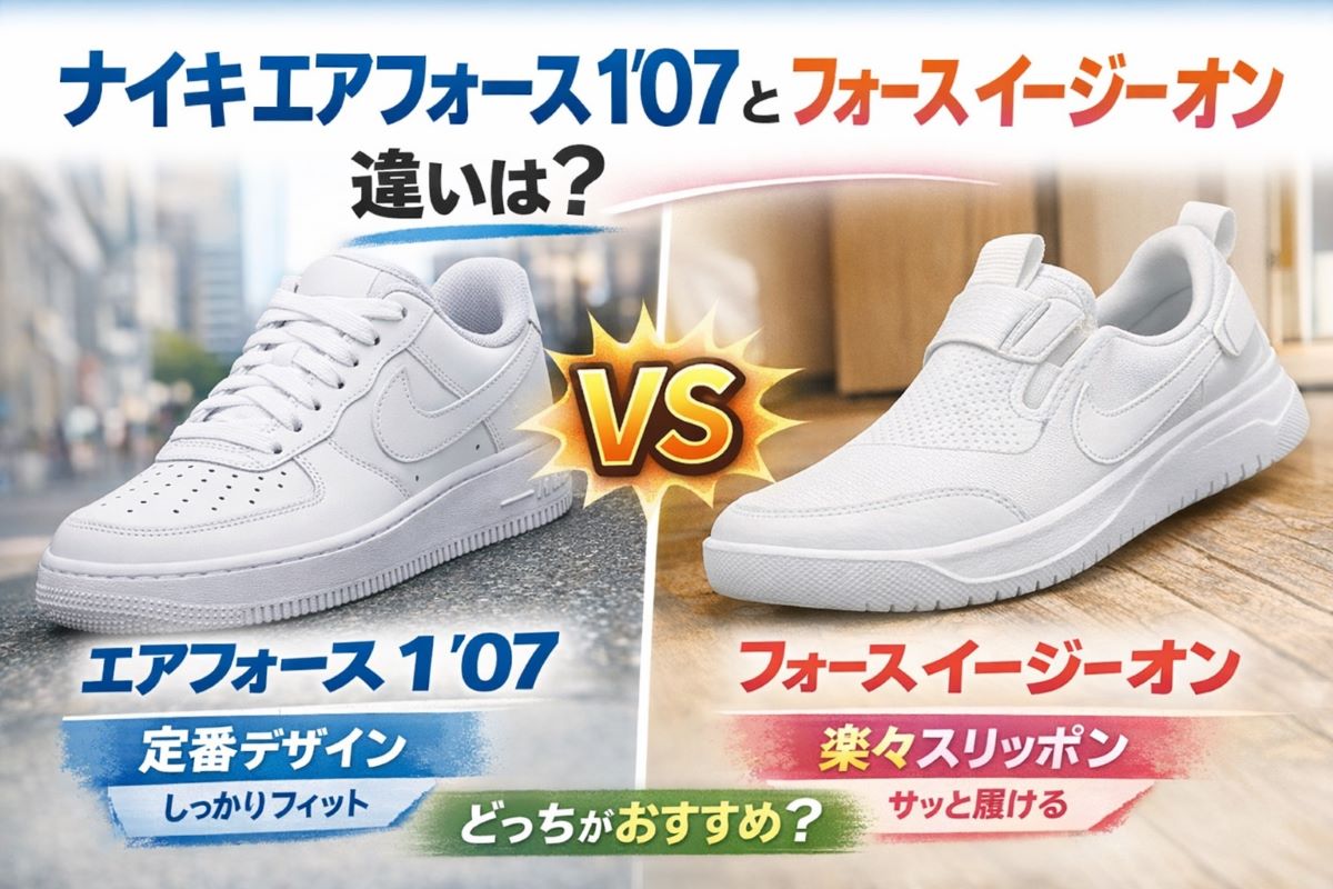 ナイキ エアフォース 1 ’07とフォース イージー オンの違いを比較して、どっちがおすすめか紹介します。